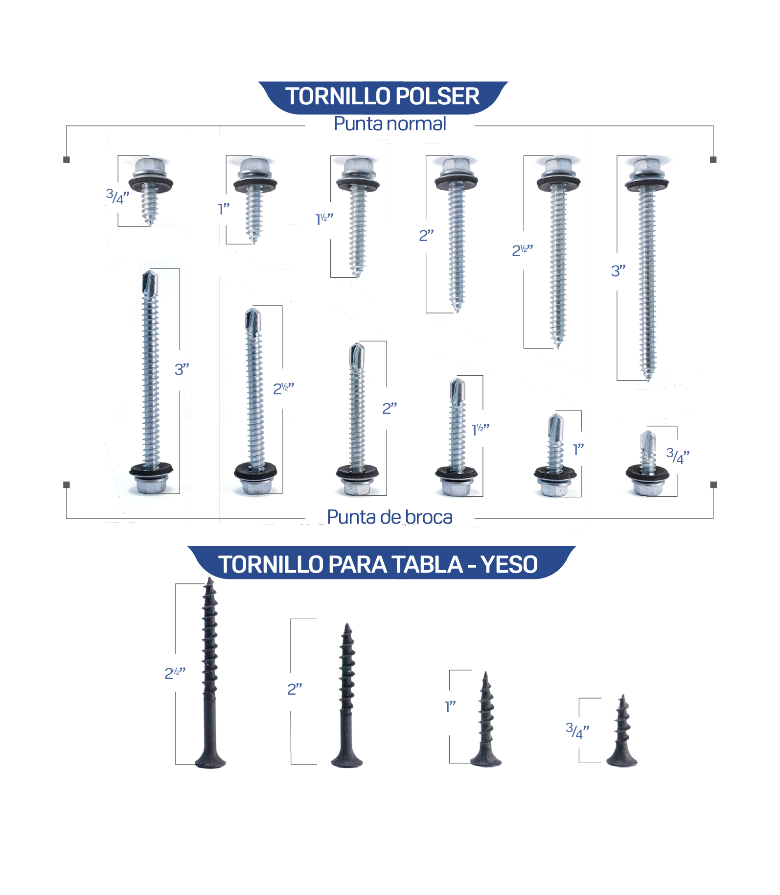 Los tornillos Transmetal son producidos de acero de bajo carbono. • Punto de perforación. • Cabeza hexagonal de 9,35 mm. • Con ranura galvanizada, y arandela de goma.